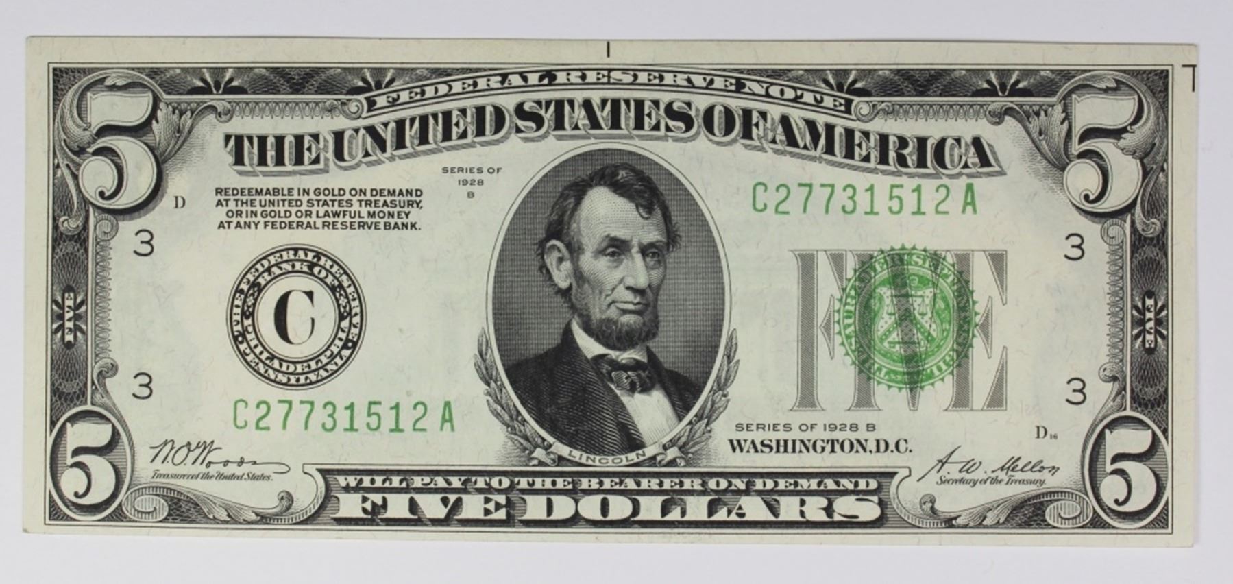 1928-B $5.00 PHILADELPHIA FEDERAL RESERVE NOTE