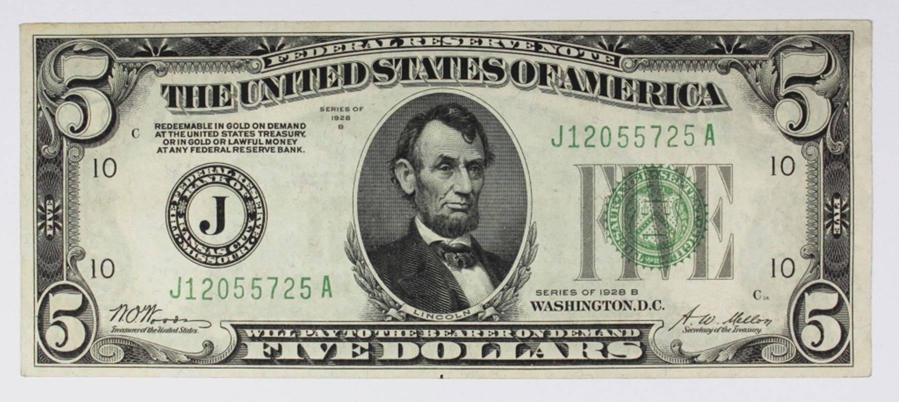 1928-B $5 SCARCE KANSAS CITY FEDERAL RESERVE NOTE