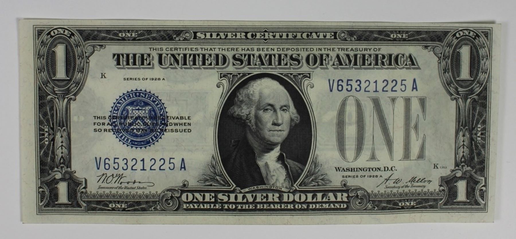 1928A $1.00 SILVER CERT "FUNNY BACK" GEM UNC