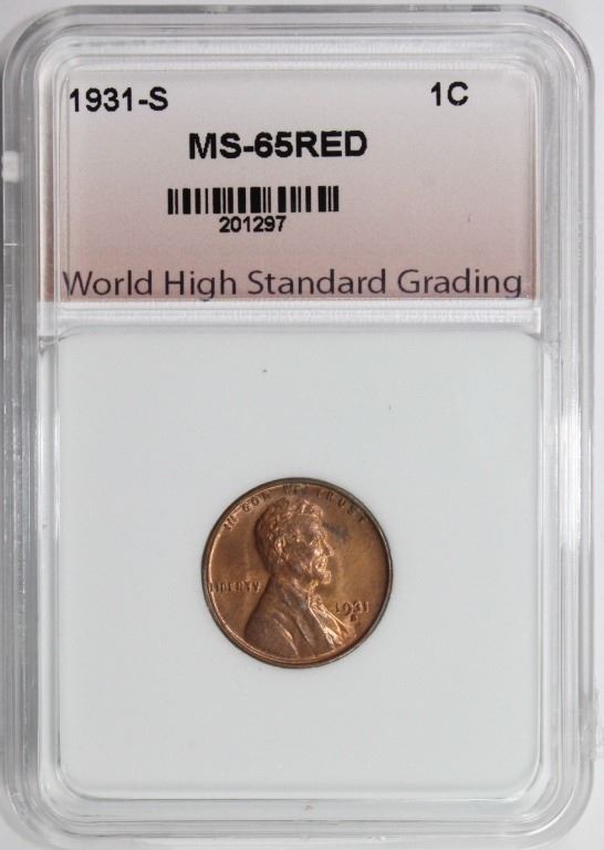 WHSG GRADED GEM BU RED. KEY COIN! ESTIMATE: $375-$450
