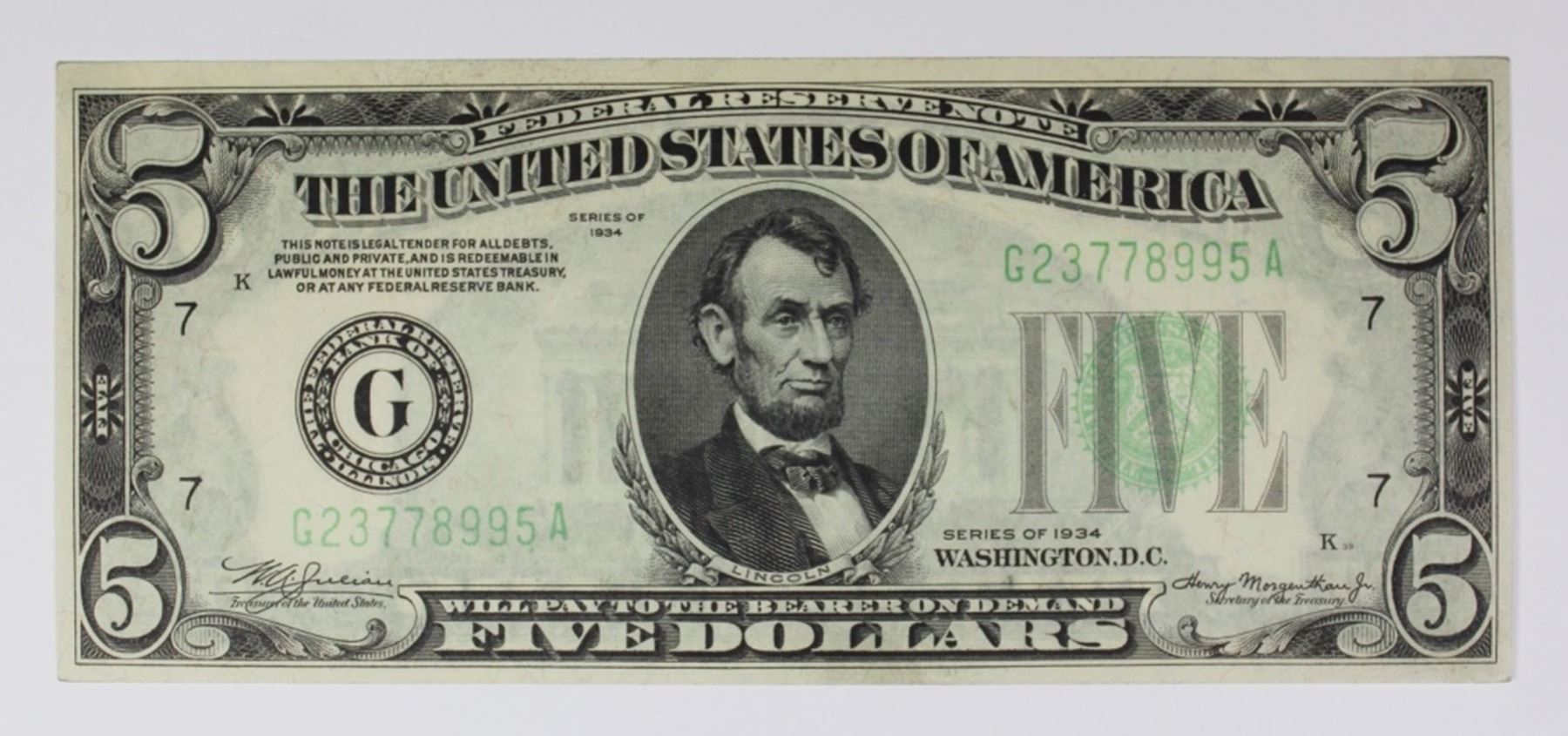 1934 $5.00 CHICAGO FEDERAL RESERVE NOTE