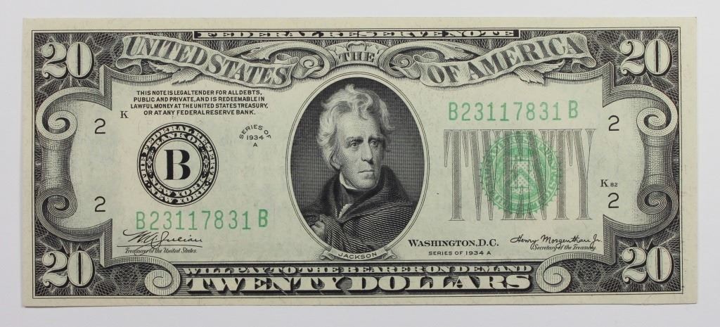 SERIES OF 1934 A. NEW YORK DISTRICT. GEM UNC. ESTIMATE: $100-$150