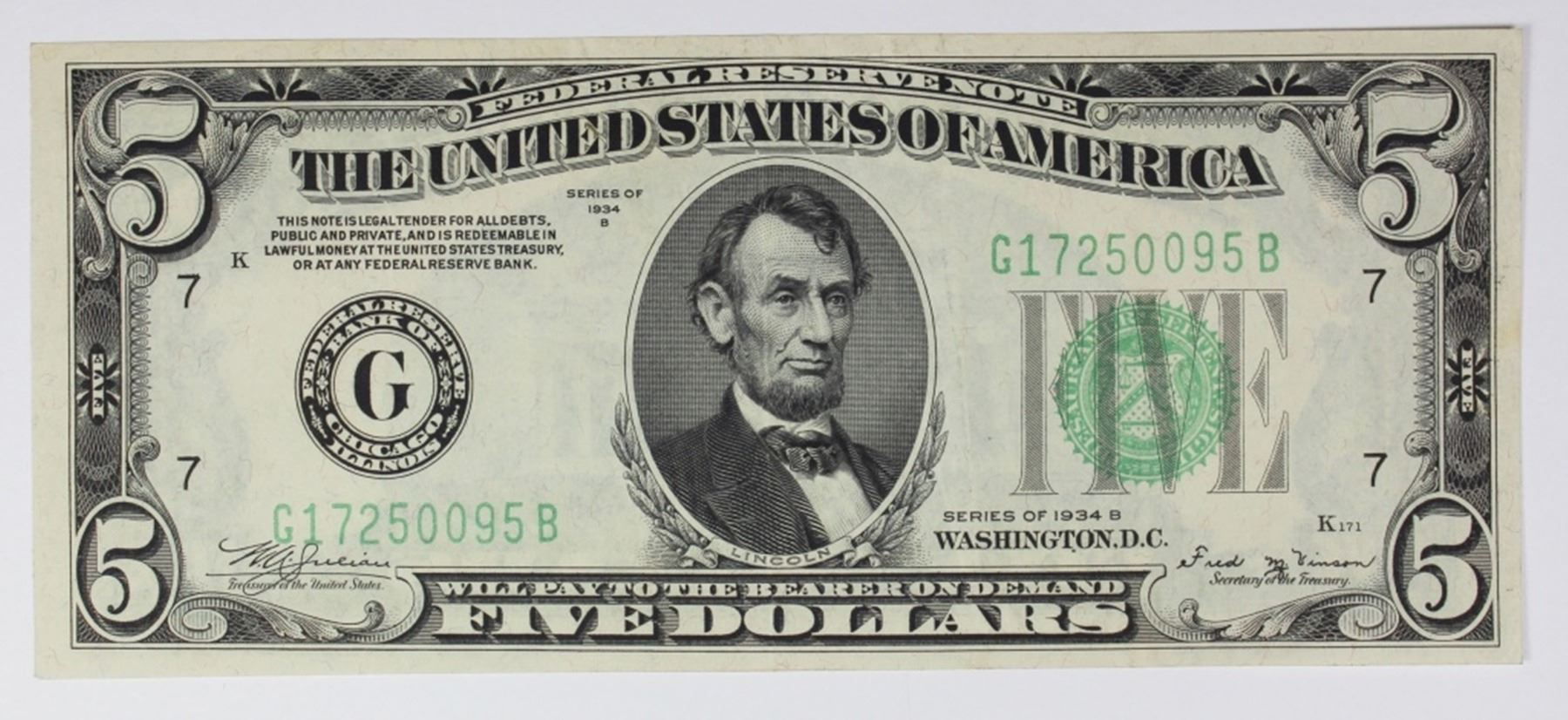 1934-B $5.00 CHICAGO FEDERAL RESERVE NOTE