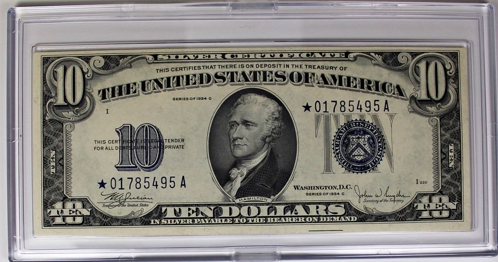 1934 C $10.00 "STAR NOTE" SILVER CERTIFICATE