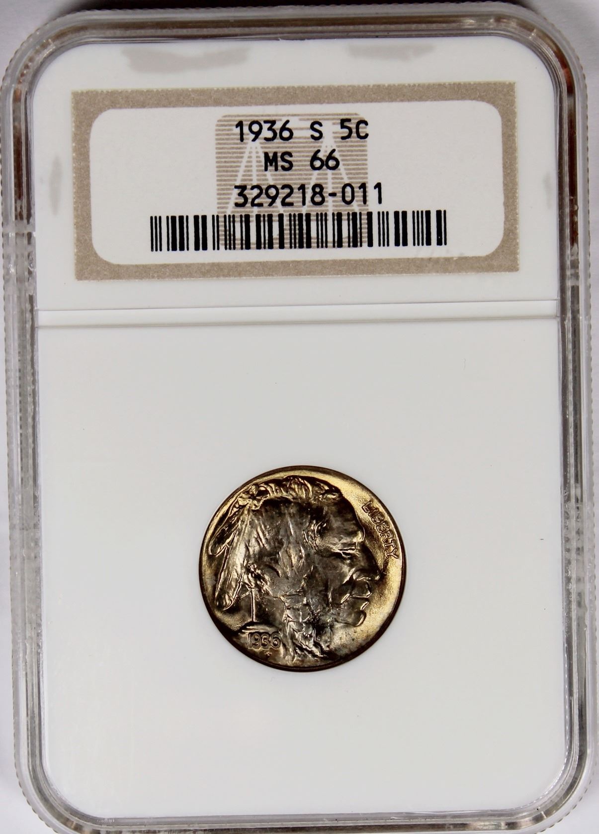 1936-S BUAFFALO NICKEL NGC MS 66 GEM SUPERB! RARE THIS NICE! ESTIMATE: $225-$300