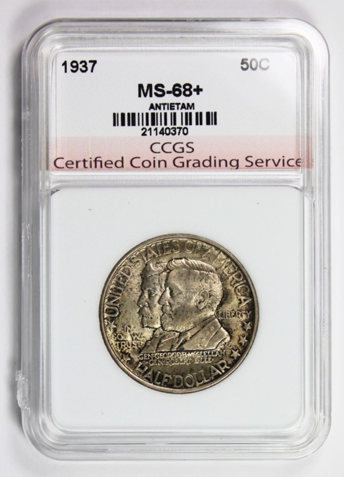 CCGS SUPERB BU+++ VIVID RAINBOW COLORS, NICEST COMMEM HALF DOLLAR WE HAVE SEEN! SPLENDID! ESTIMATE: $4000-$4500