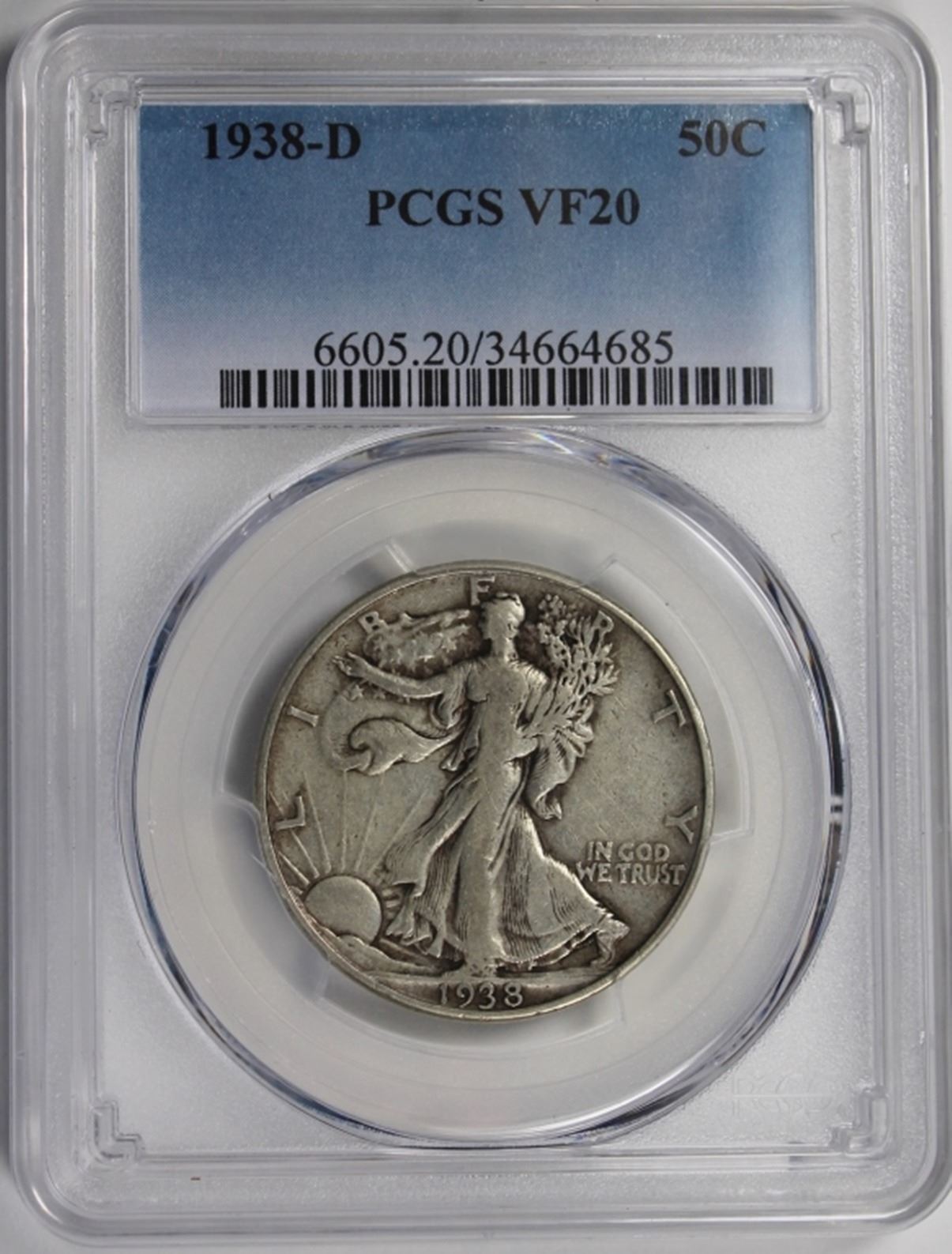 1938-D WALKING LIBERTY HALF DOLLAR PCGS VF20