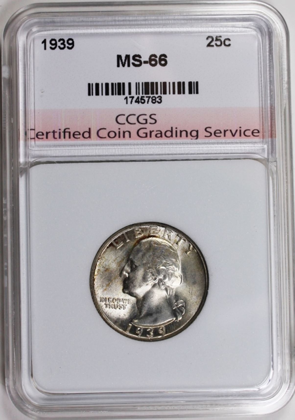 1939 WASHINGTON QUARTER CCGS SUPERB GEM BU SEMI-KEY. ESTIMATE: $110-$150