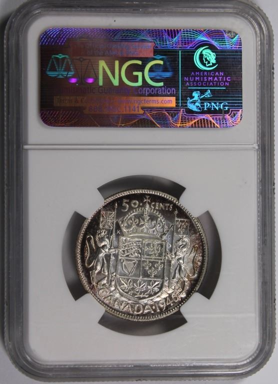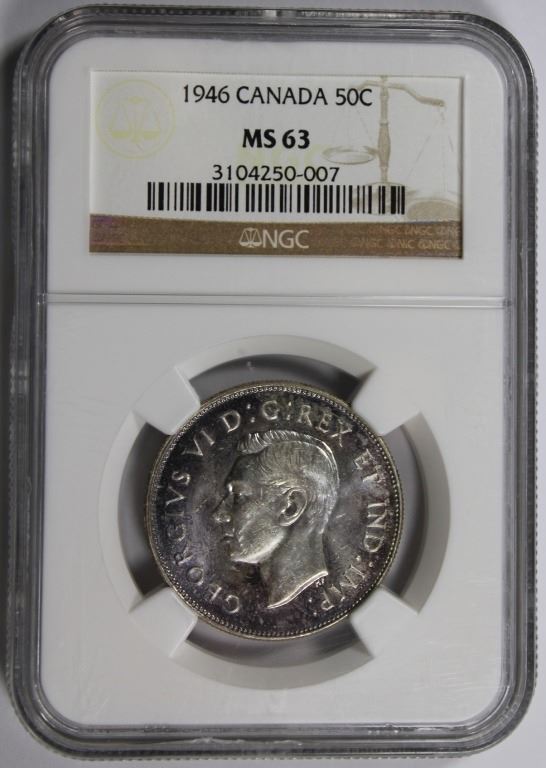 1946 CANADA HALF DOLLAR NGC MS 63 SCARCE! ESTIMATE: $200-$250