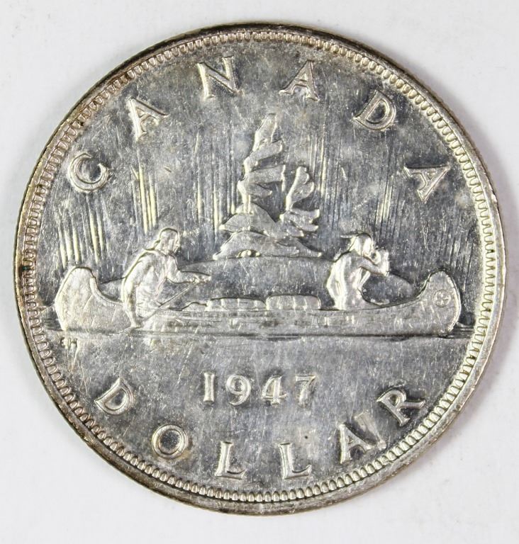1947 POINTED 7 CANADA SILVER DOLLAR