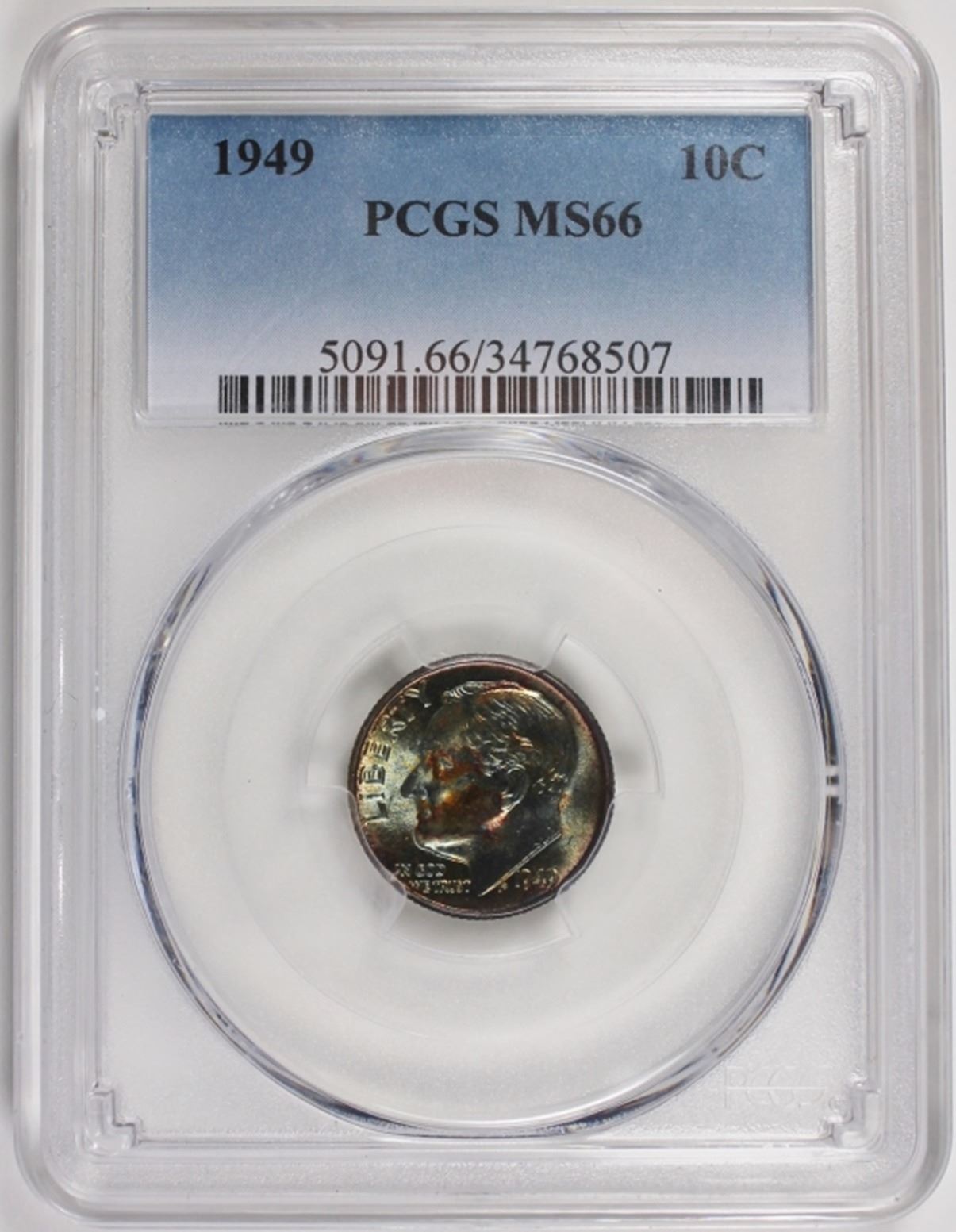 1949 ROOSEVELT DIMES PCGS MS66