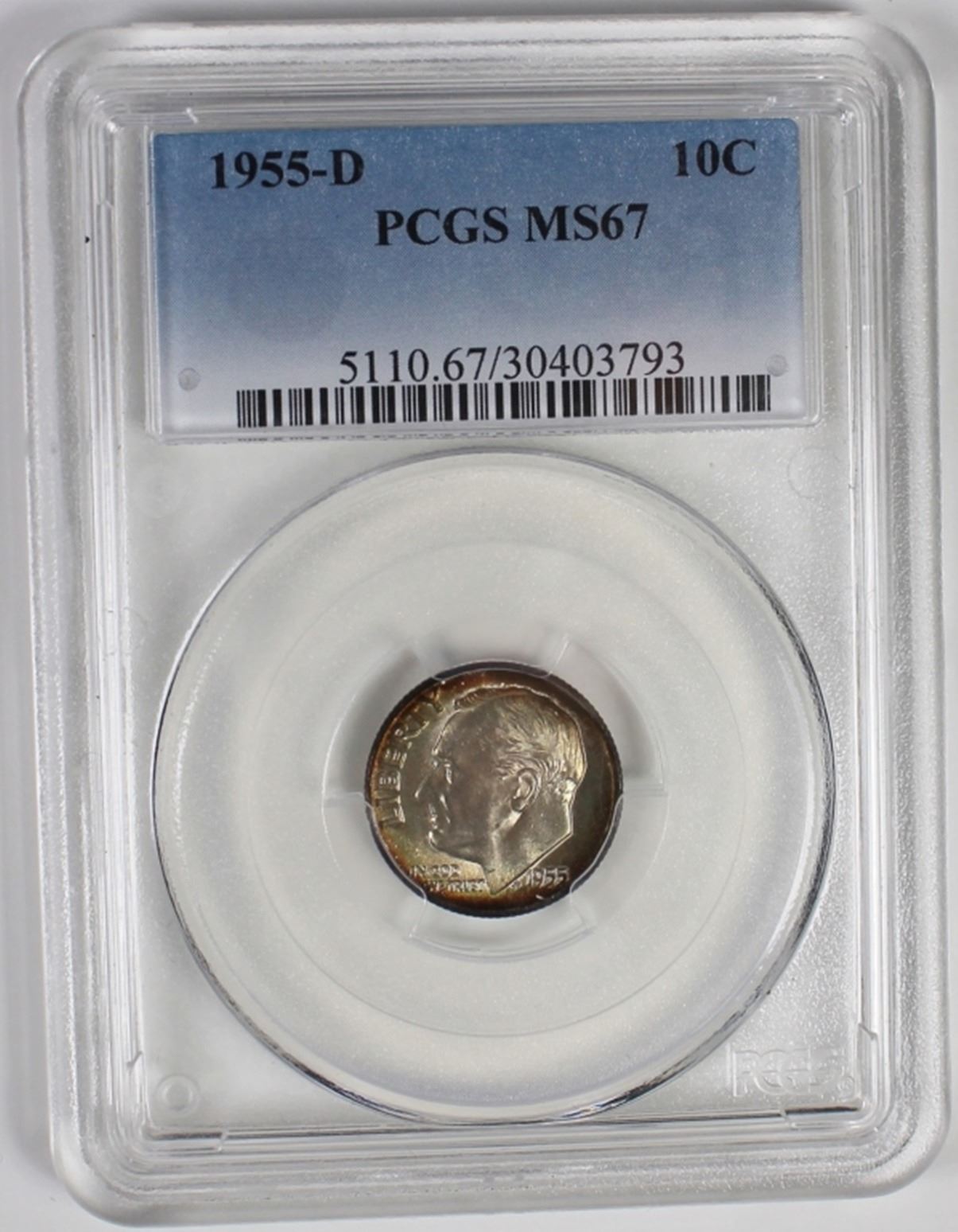 1955-D ROOSEVELT DIME PCGS MS 67