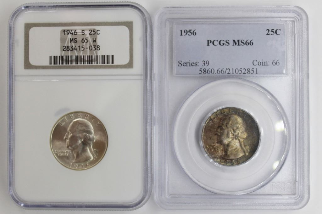 1956 PCGS MS 66 RAINBOW COLORS & 1946-S NGC MS 65 WHITE GEM! ESTIMATE: $100-$150