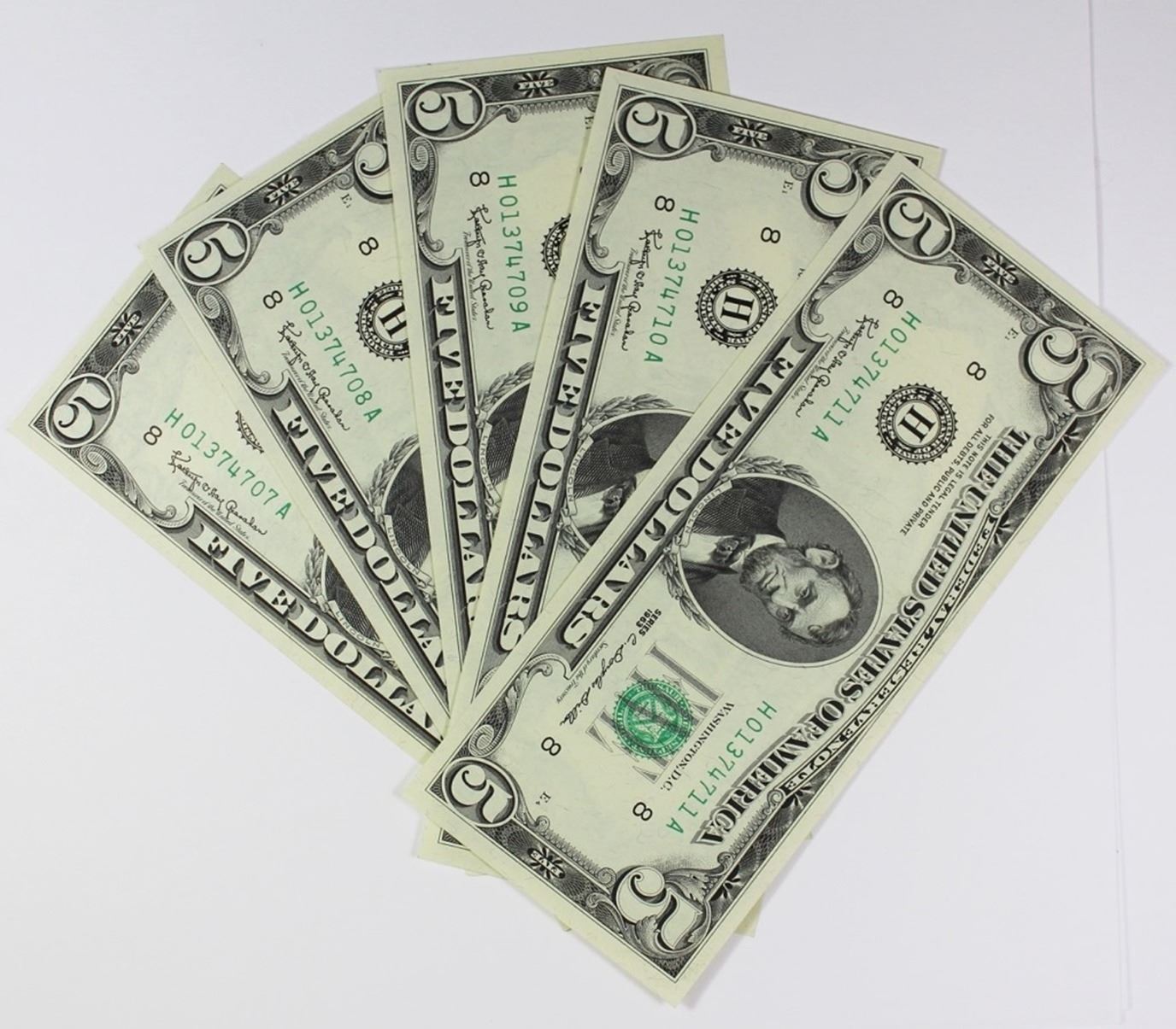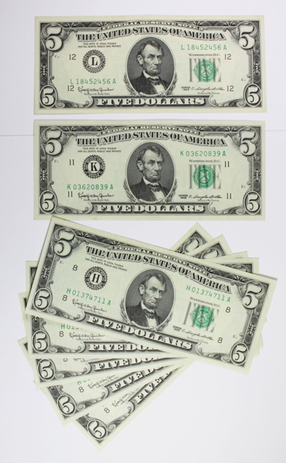 DALLAS AND (5) ST. LOUIS CONSECUTIVE SERIAL NUMBERS (TOP RIGHT CORNER MINOR CREASE) AND SAN FRANCISCO AU+. SEVEN NOTES TOTAL.. ESTIMATE: $150-$250