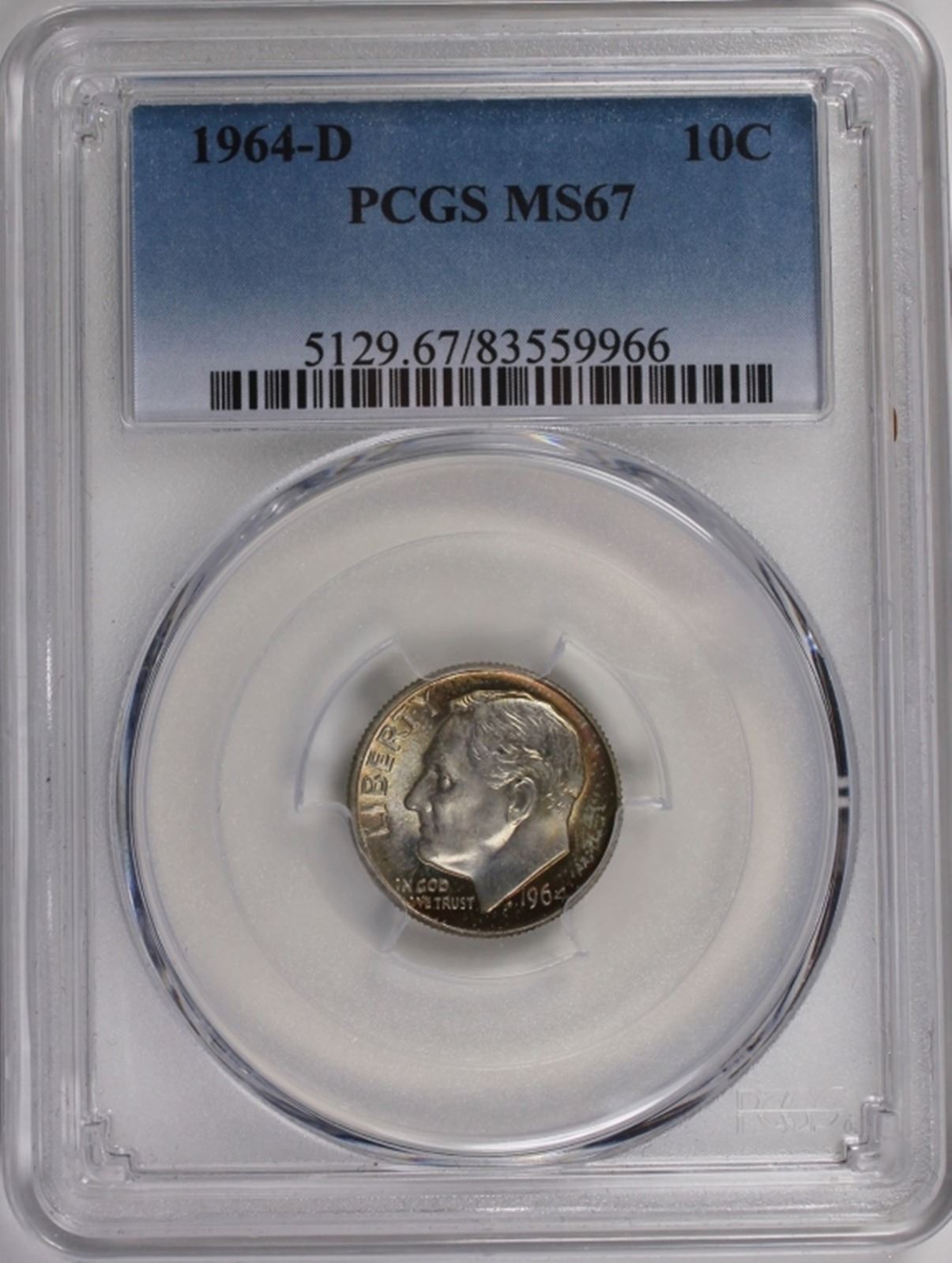 1964-D ROOSEVELT DIME PCGS MS 67
