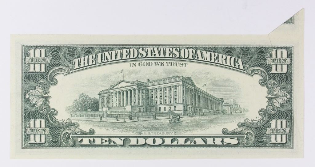 WITH C CORNER OF ANOTHER NOTE ON TOP LEFT, GEM UNC, VERY RARE! ESTIMATE: $1750-$2000