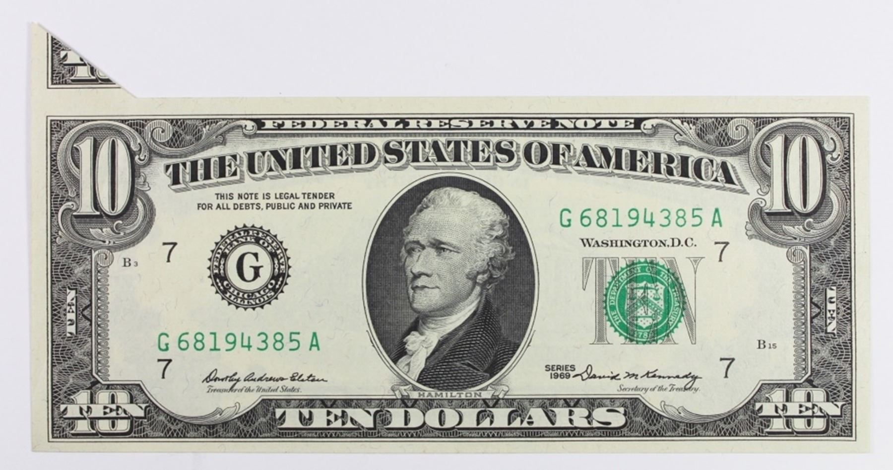 WITH C CORNER OF ANOTHER NOTE ON TOP LEFT, GEM UNC, VERY RARE! ESTIMATE: $1750-$2000