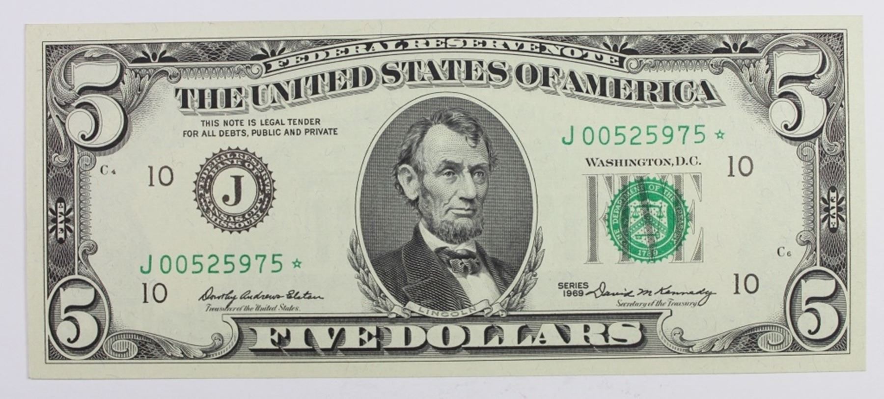 1969 $5.00 FEDERAL RESERVE STAR NOTE