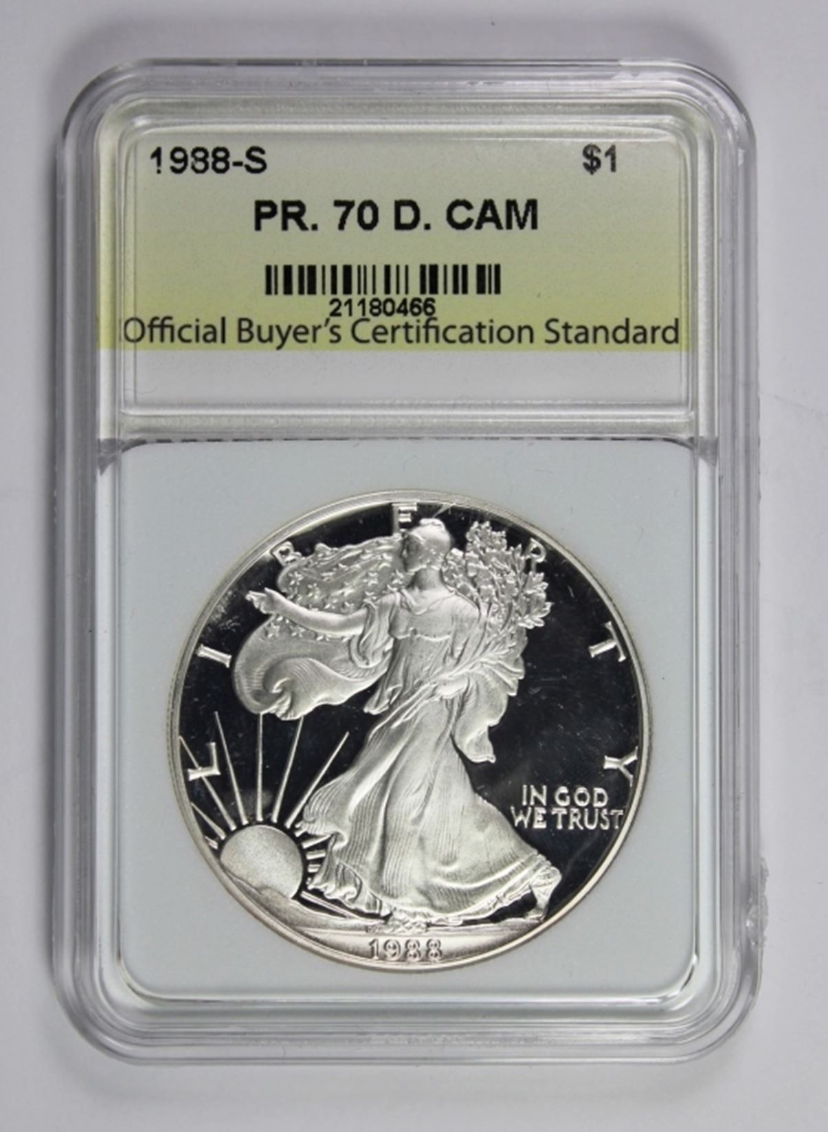 PERFECT PROOF DEEP CAMEO. OBCS GRADED. COMES WITH BOX AND CERT. ESTIMATE: $400-$450