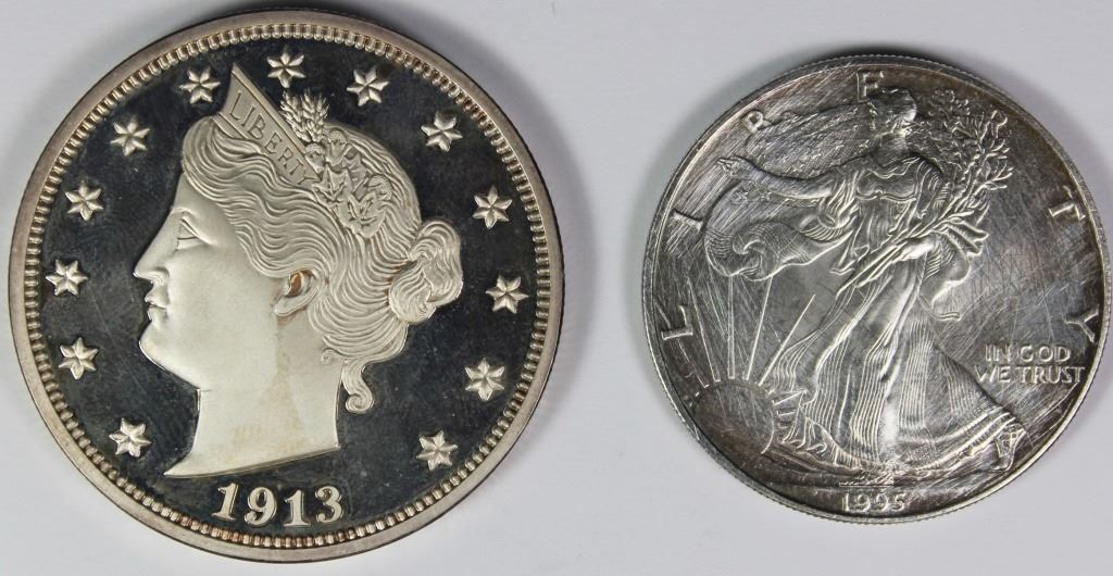 1995 AMERICAN SILVER EAGLE. MARKS ON IT. ESTIMATE: $65-$85