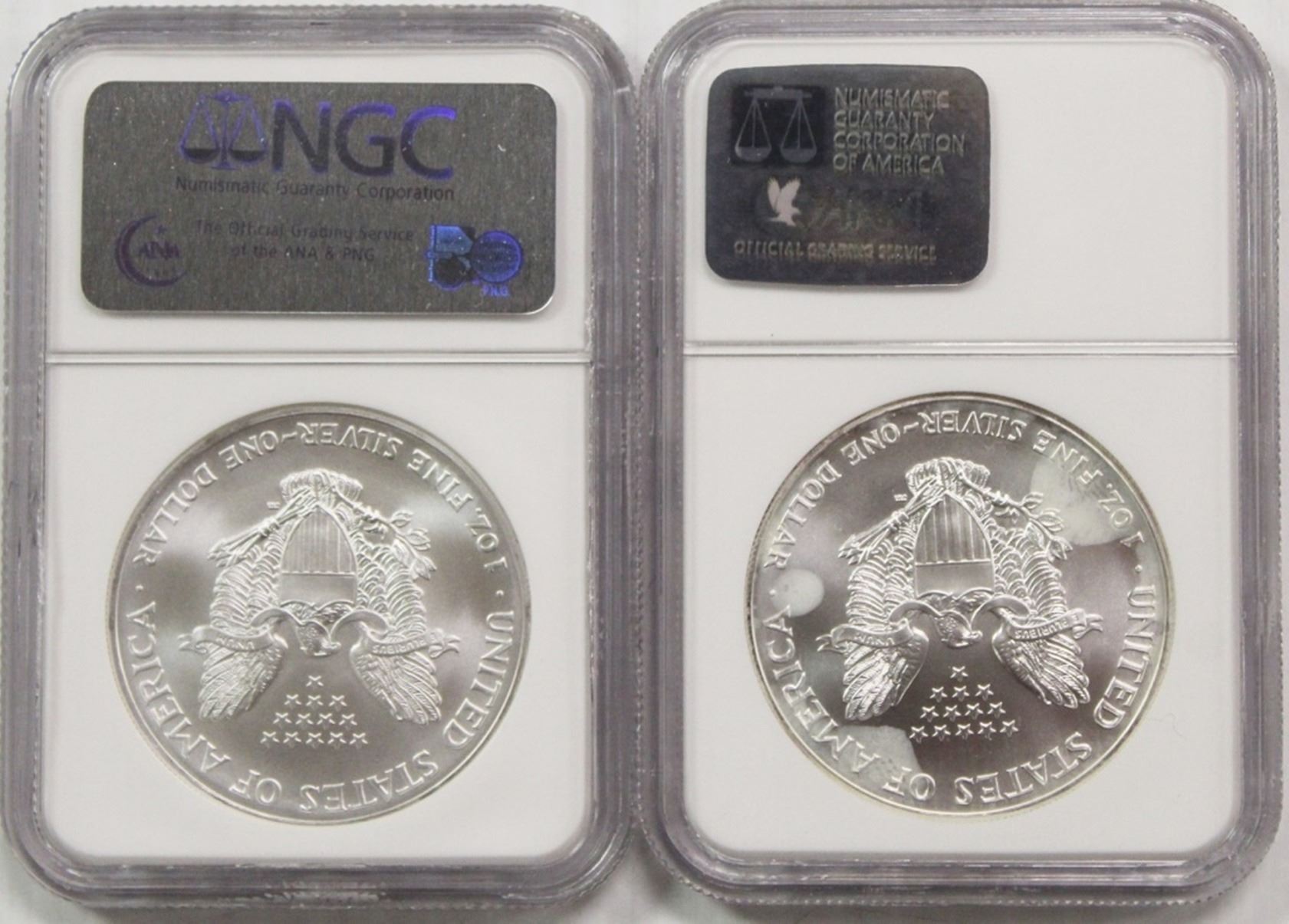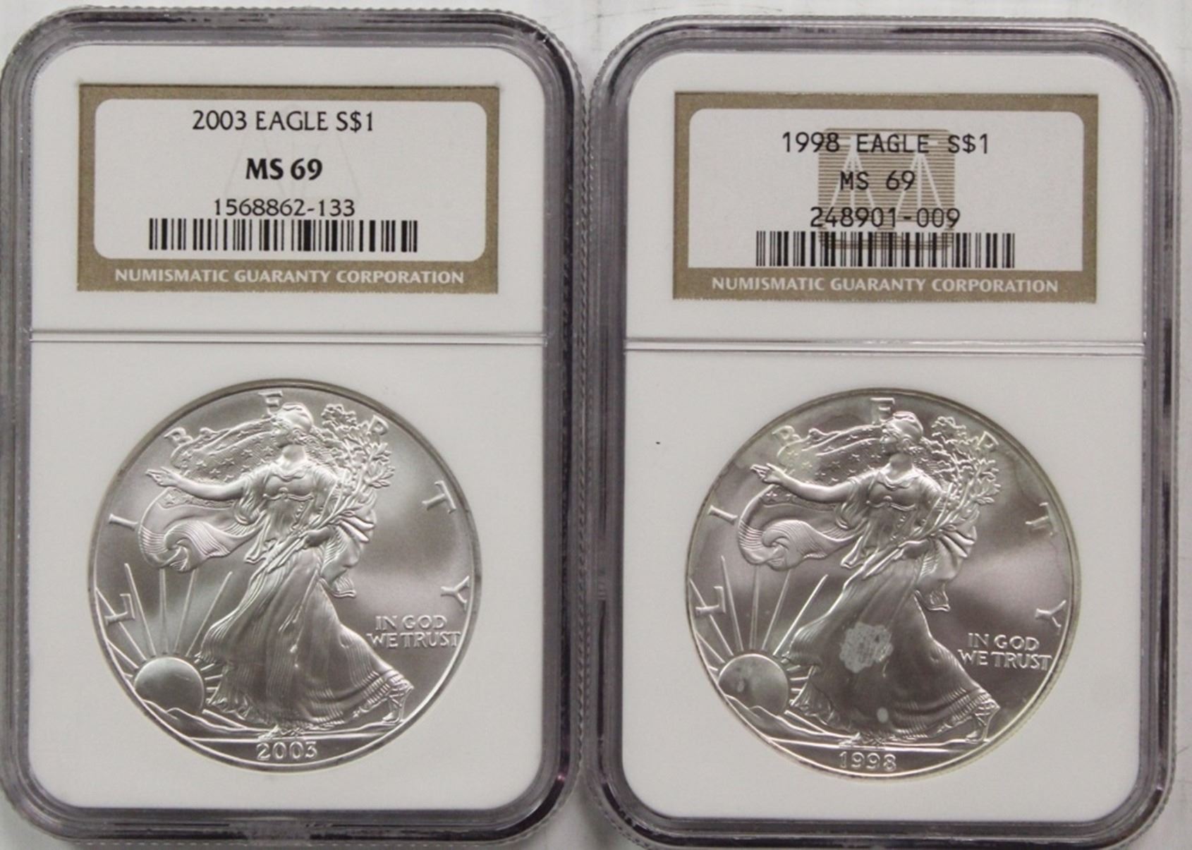 BOTH NGC GRADED. MS69. ESTIMATE: $100-$125