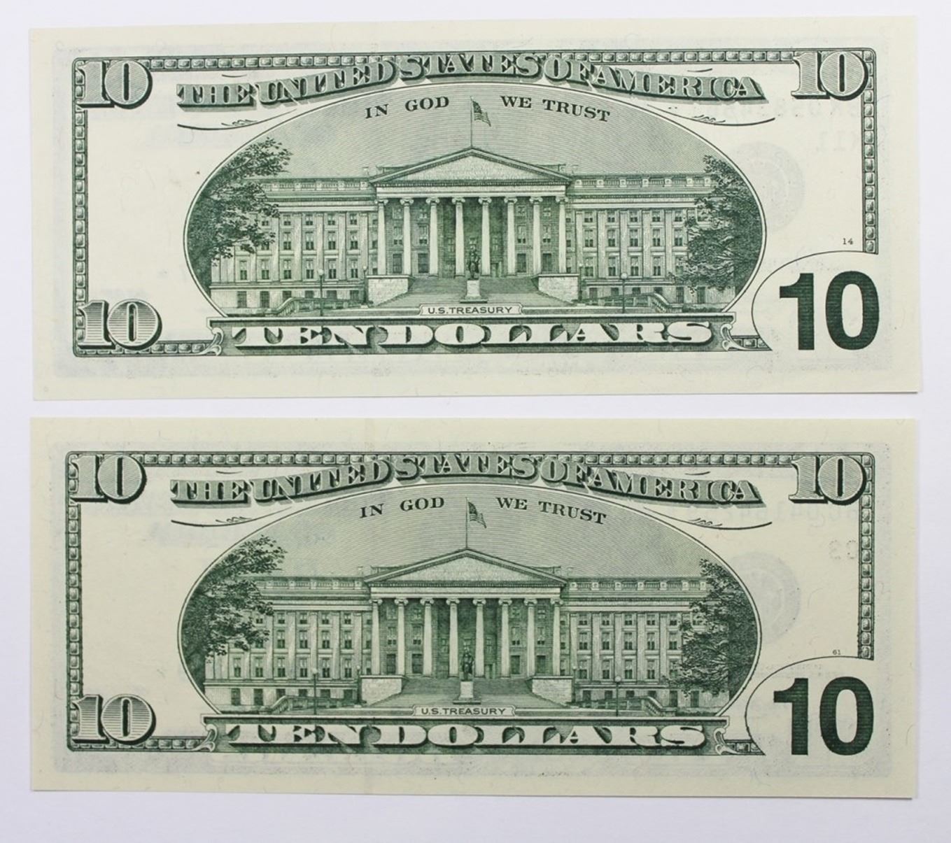 FEDERAL RESERVE NOTES. GEM UNC. TWO NOTES TOTAL. ESTIMATE: $100-$125