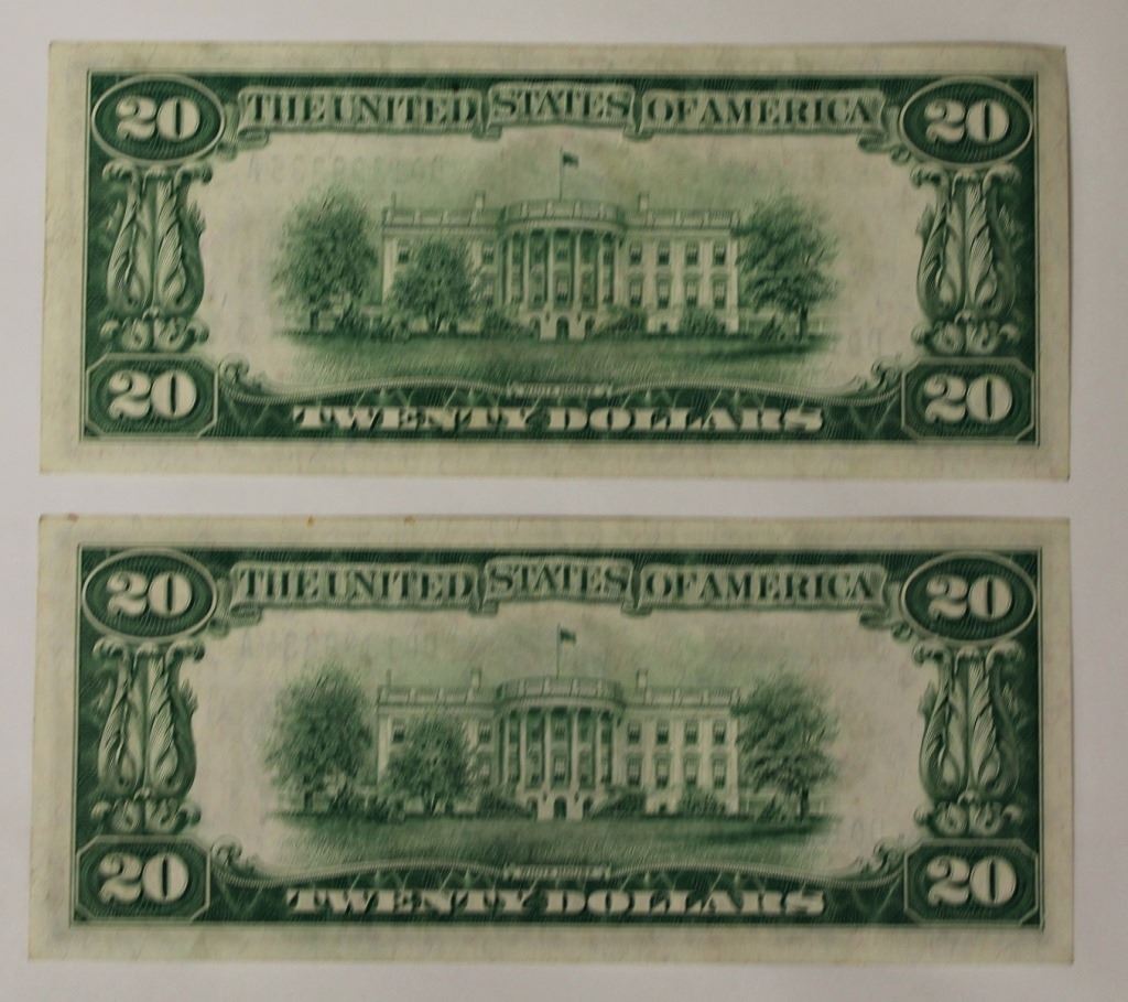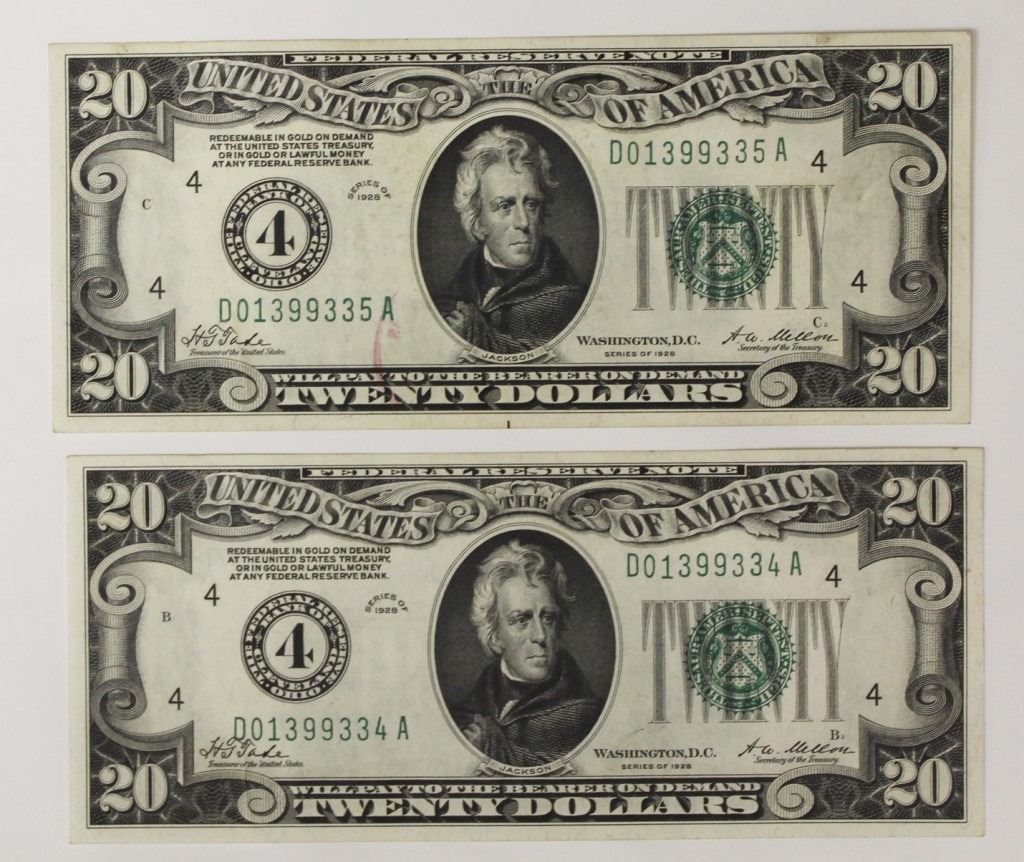 CONSECUTIVE SERIAL NUMBERS. 1- GEM UNC, 1- AU/UNC. CLEVELAND. FR 2050-D. ESTIMATE: $400-$500