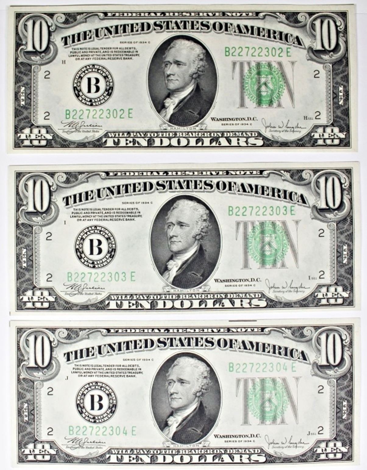 (2) 1934-C $10 FEDERAL RESERVE NOTE