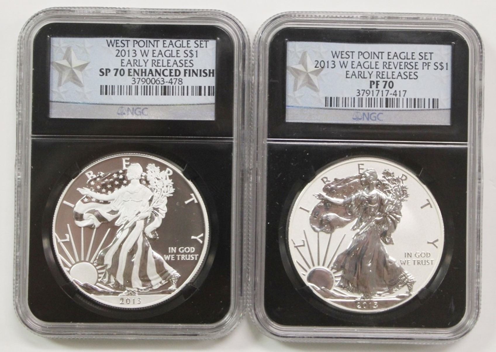 WEST POINT SETS. NGC PF 70. REVERSE PROOF AND SP 70 ENHANCED FINISH. ESTIMATE: $500-$600