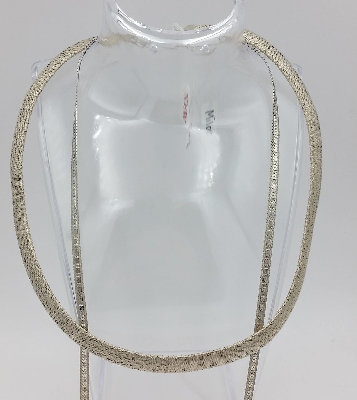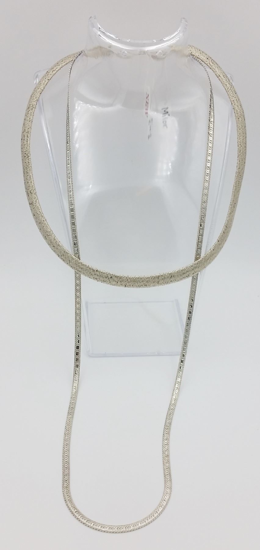 (2) BEAUTIFUL MILOR ITAL STERLING SILVER NECKLACES. ONE IS THICKER AND CHOKER STYLE. WEIGHTS 23.3 GRAMS. APPROX. 8 INCHES LONG. .THE OTHER IS A LONG CHAIN WITH DETAILING. 30 INCHES LONG. WEIGHS 14.1 GRAMS. PRE-OWNED. . ESTIMATE:$100-$125