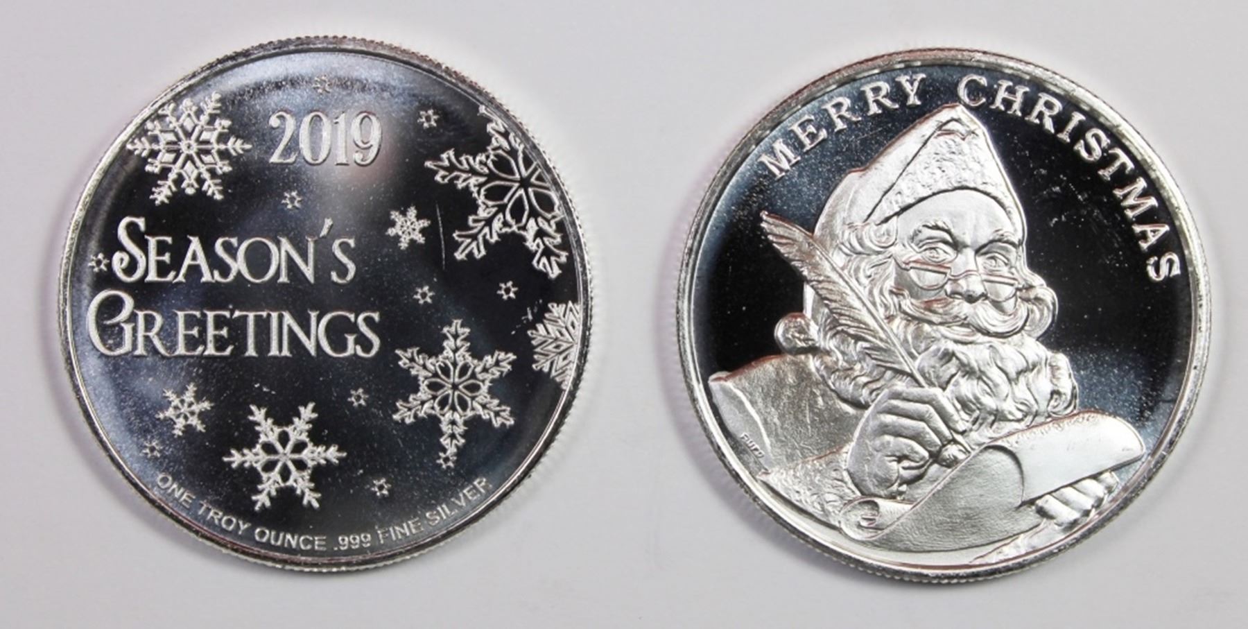 (2) DIFFERENT 2019 CHRISTMAS SILVER ROUNDS