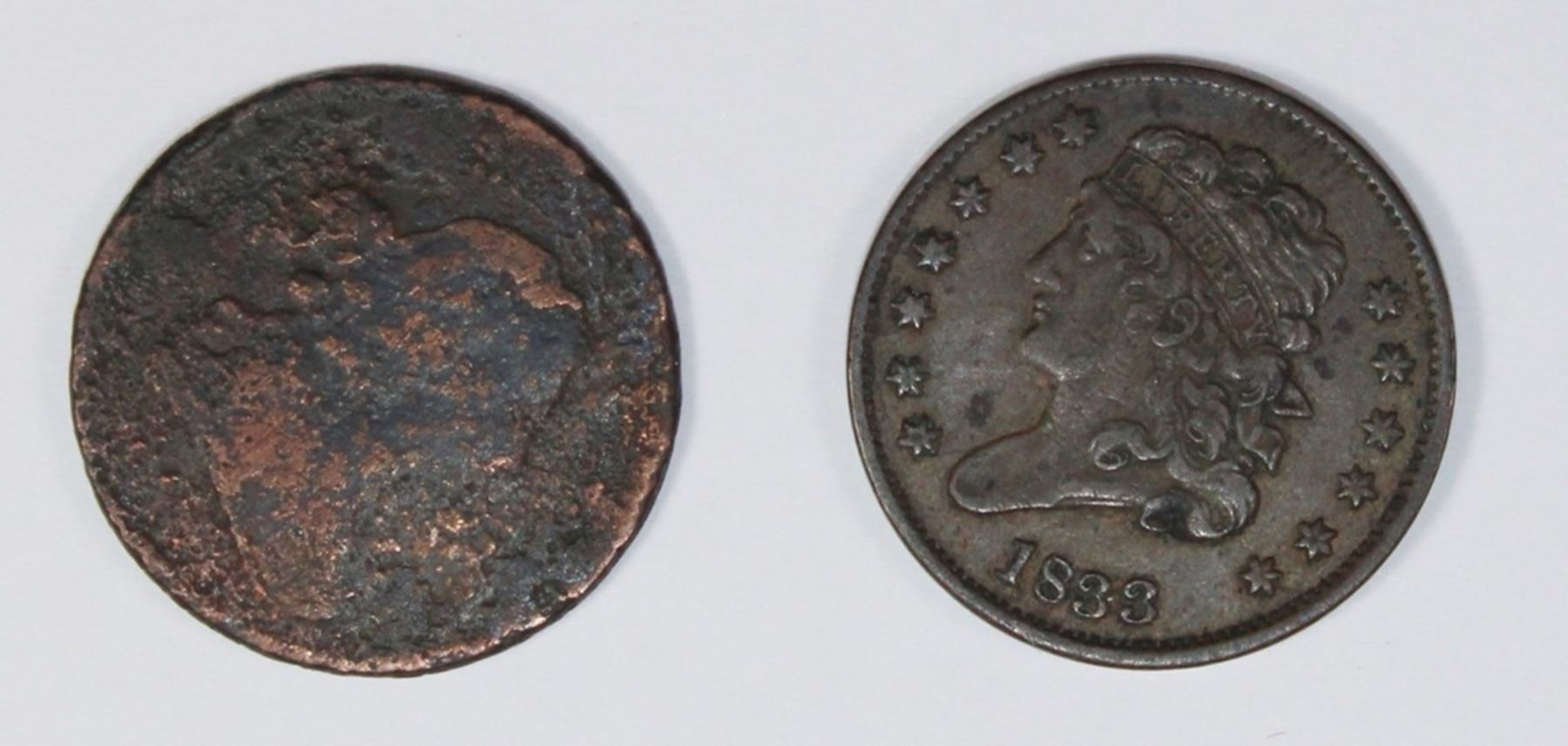 1833 XF-AU AND 1805 FAIR. ESTIMATE: $100-$150