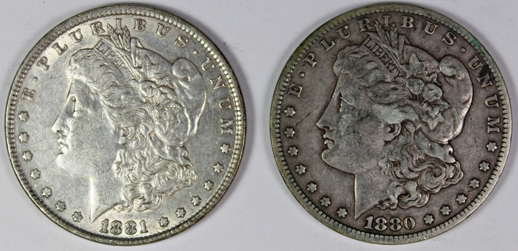 1880-S VF AND 1881 AU/UNC. ESTIMATE: $90-$150