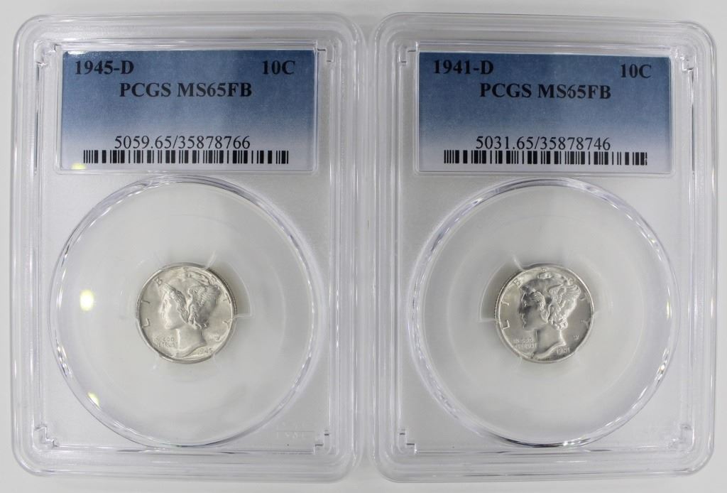 (2) PCGS GRADED MERCURY DIMES MS65FB