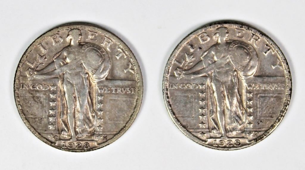 1928 XF-AU AND 1928-D XF-AU ORIGINALS. ESTIMATE: $100-$150