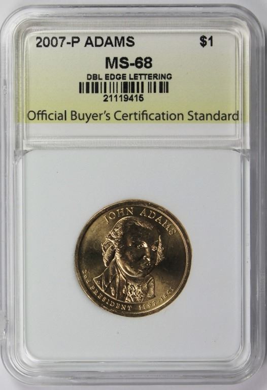 2007 JOHN ADAMS MINT ERROR DOLLAR