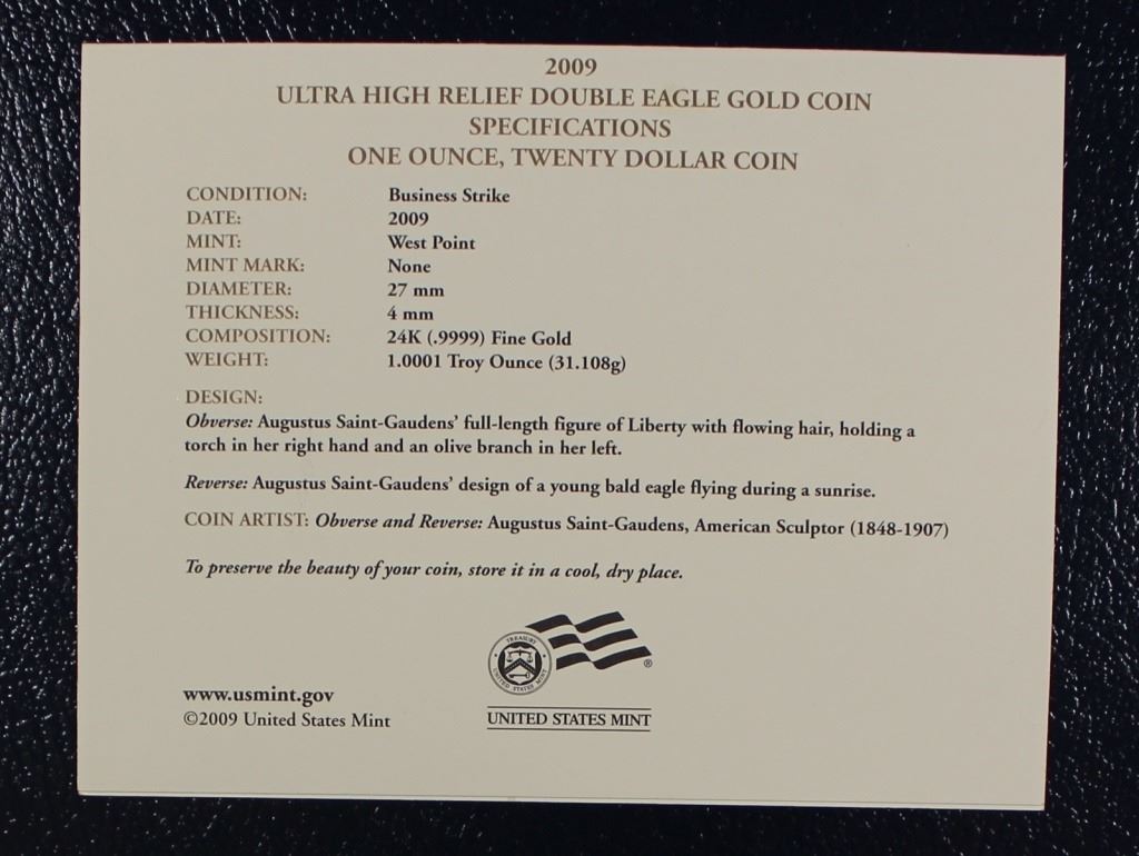 2009 ULTRA HIGH RELIEF $20 GOLD