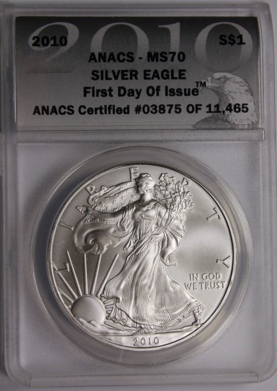 2010 AMERICAN SILVER EAGLE ANACS MS 70. ESTIMATE: $85-$100