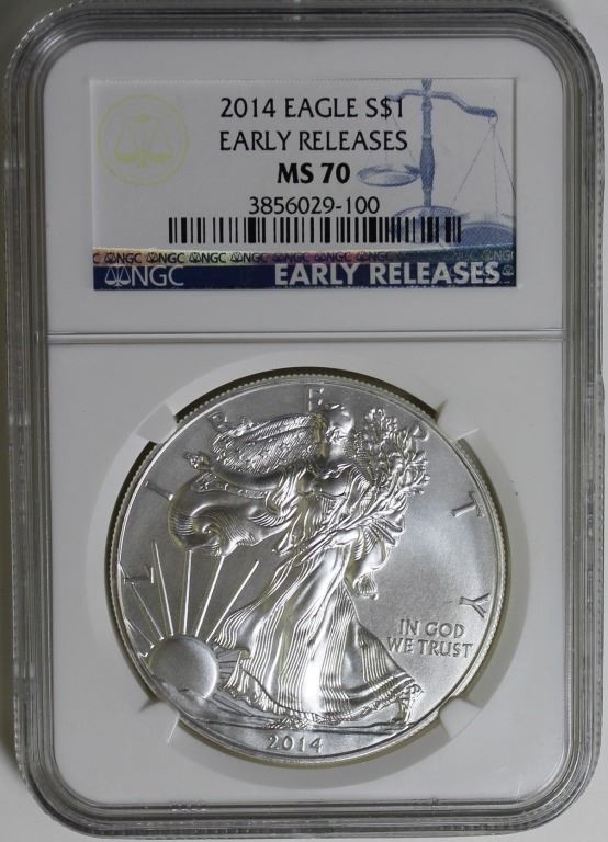 2014 AMERICAN SILVER EAGLE NGC MS70 EARLY RELEASE. ESTIMATE: $90-$130