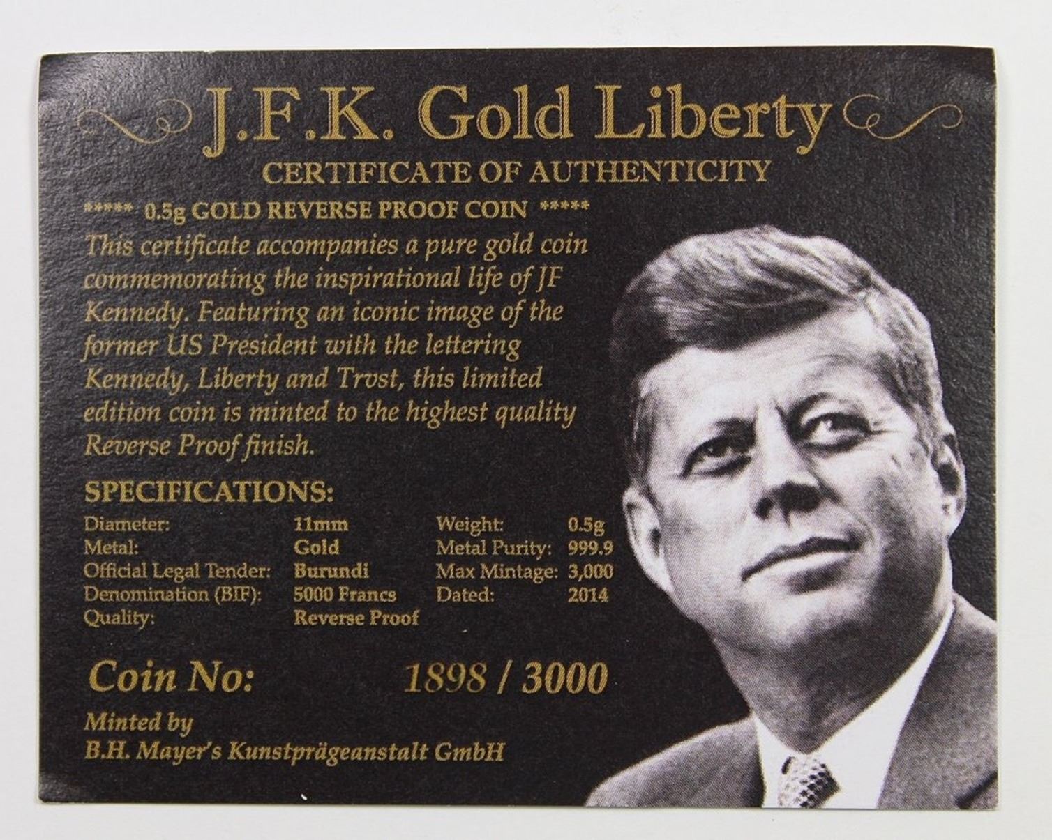 2014 BURUNDI JFK GOLD  .5 GRAM