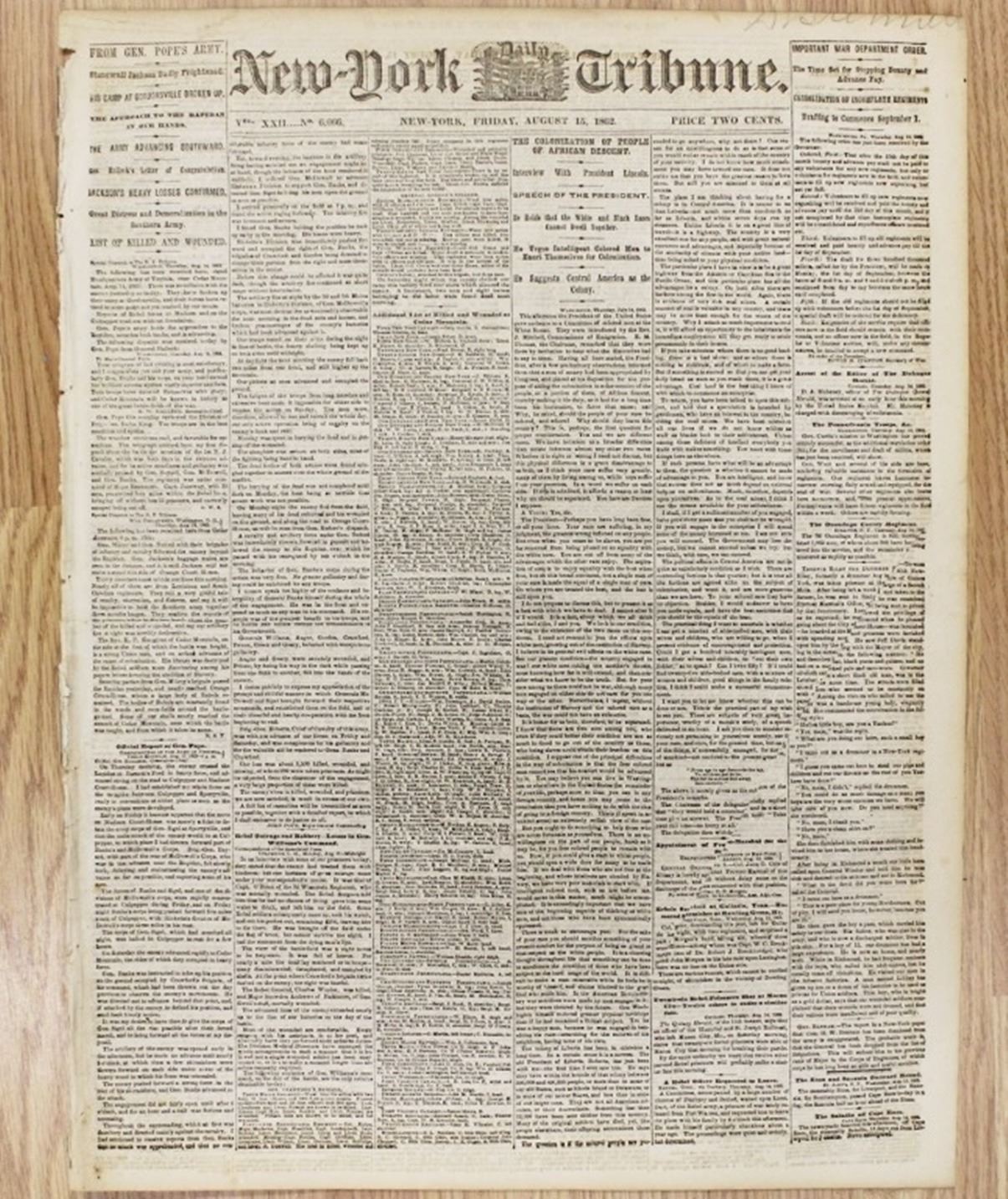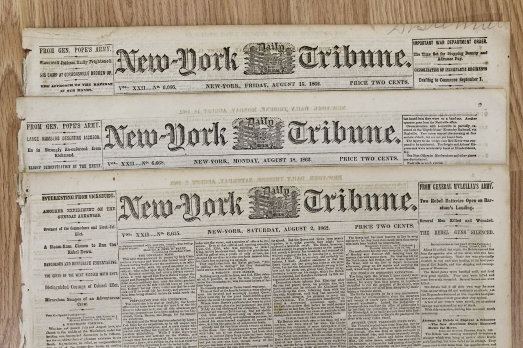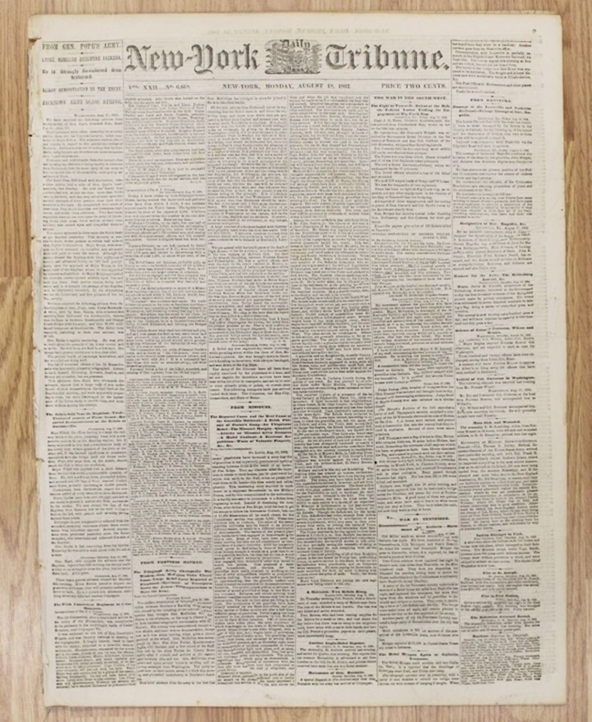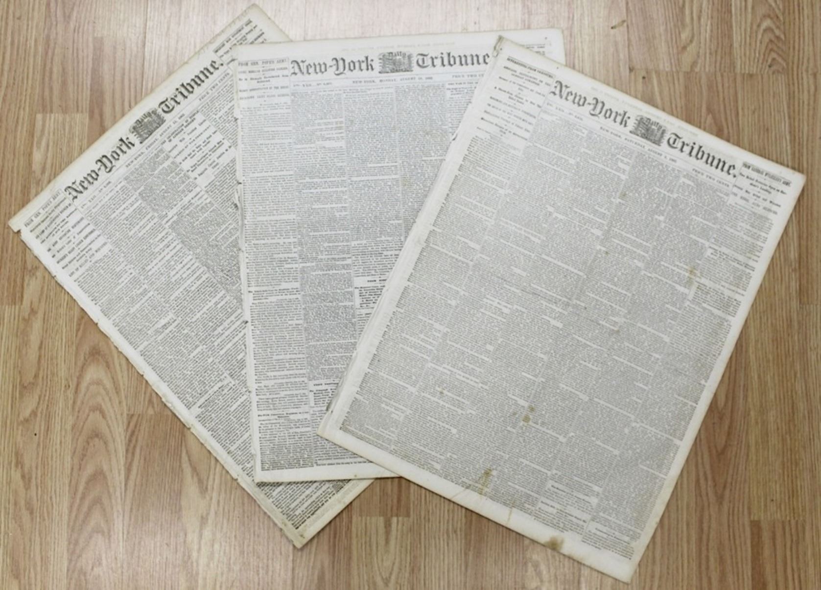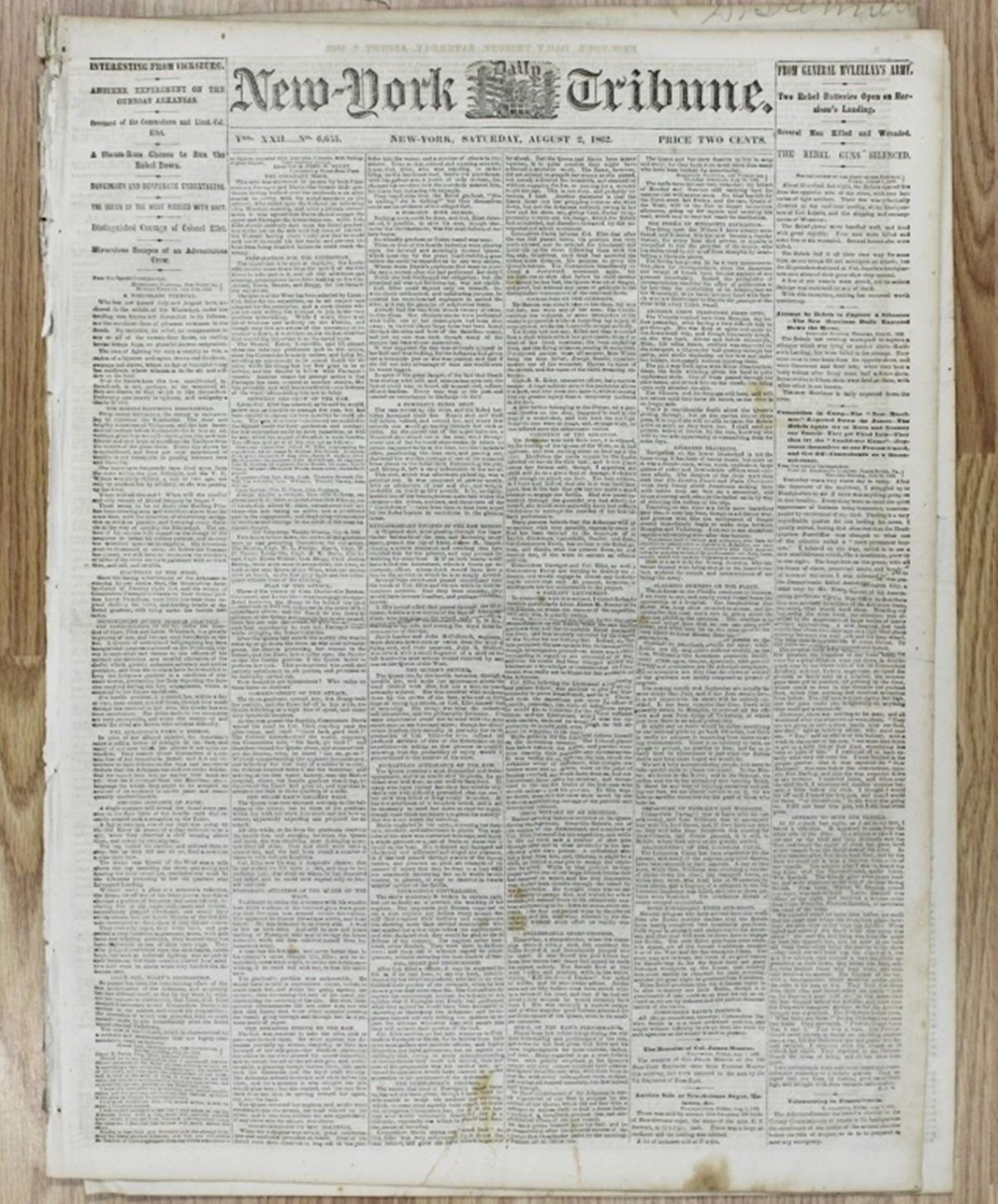 1861-1865. NEW YORK TRIBUNE, 100% AUTHENTIC AND ORIGINAL. WHAT A SUPER CONTENT TO READ! ESTIMATE: $150-$200
