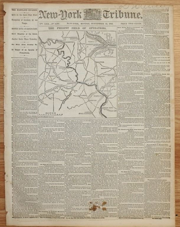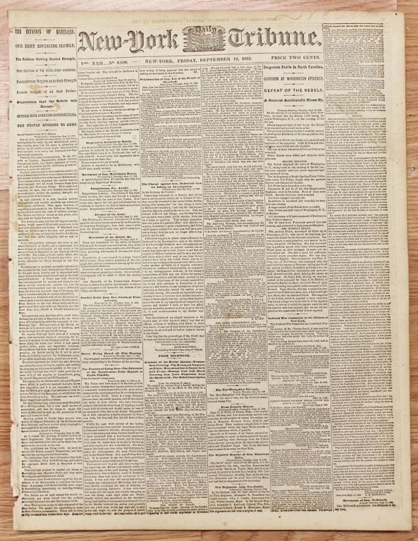 1861-1865. NEW YORK TRIBUNE, 100% AUTHENTIC AND ORIGINAL. WHAT A SUPER CONTENT TO READ! ESTIMATE: $150-$200
