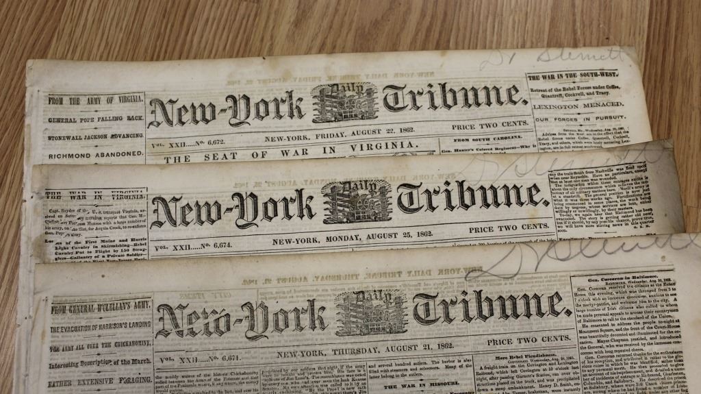 1861-1865. NEW YORK TRIBUNE, 100% AUTHENTIC AND ORIGINAL. WHAT A SUPER CONTENT TO READ! ESTIMATE: $150-$200