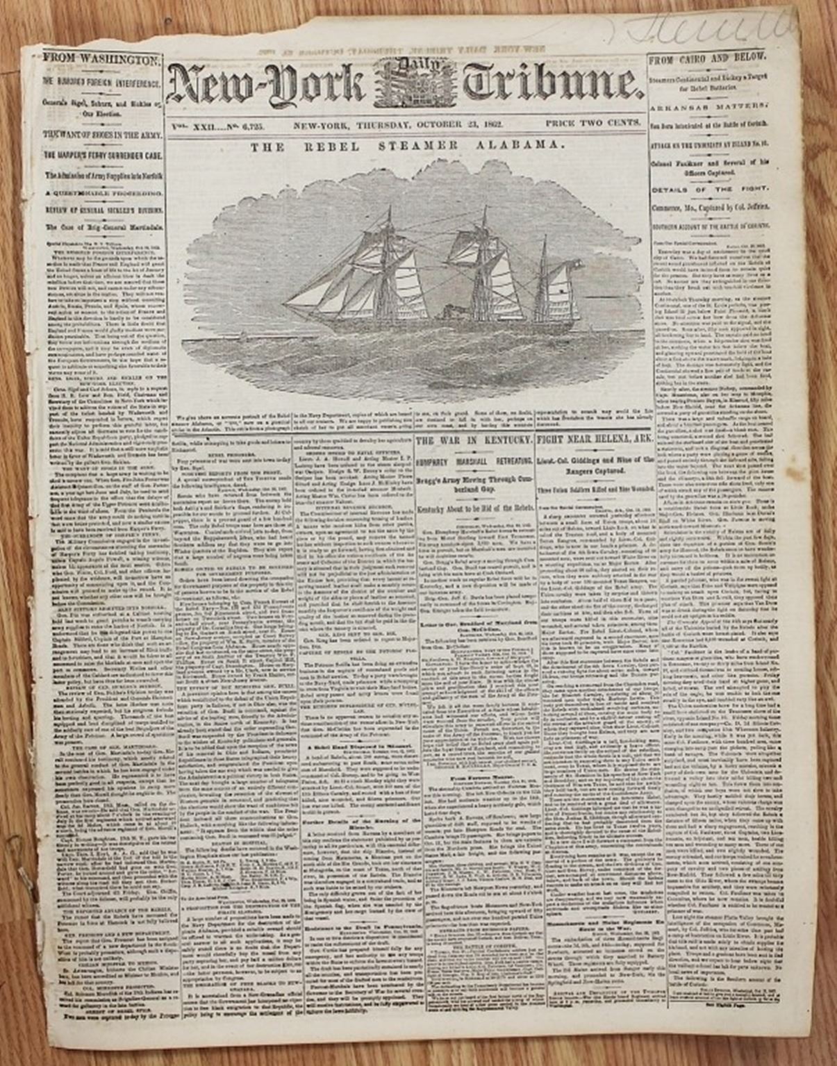 1861-1865. NEW YORK TRIBUNE, 100% AUTHENTIC AND ORIGINAL. WHAT A SUPER CONTENT TO READ! ESTIMATE: $150-$200