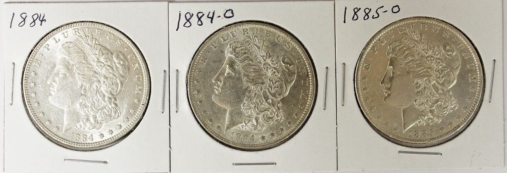 1884, 1884-O AND 1885-O. ALL AU. ESTIMATE: $75-$100