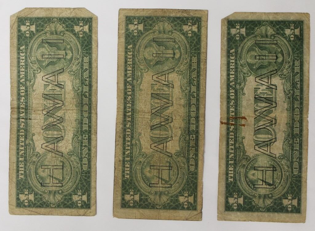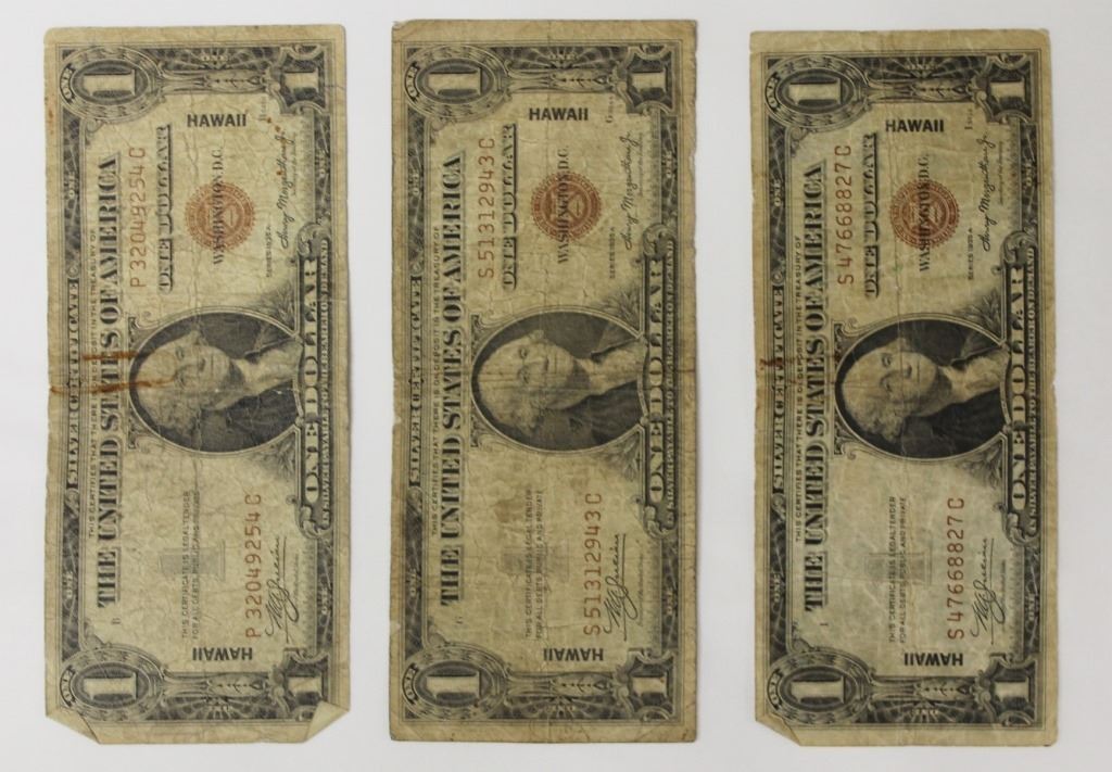 3 PCS. HAWAII $1.00 SILVER CERTIFICATES