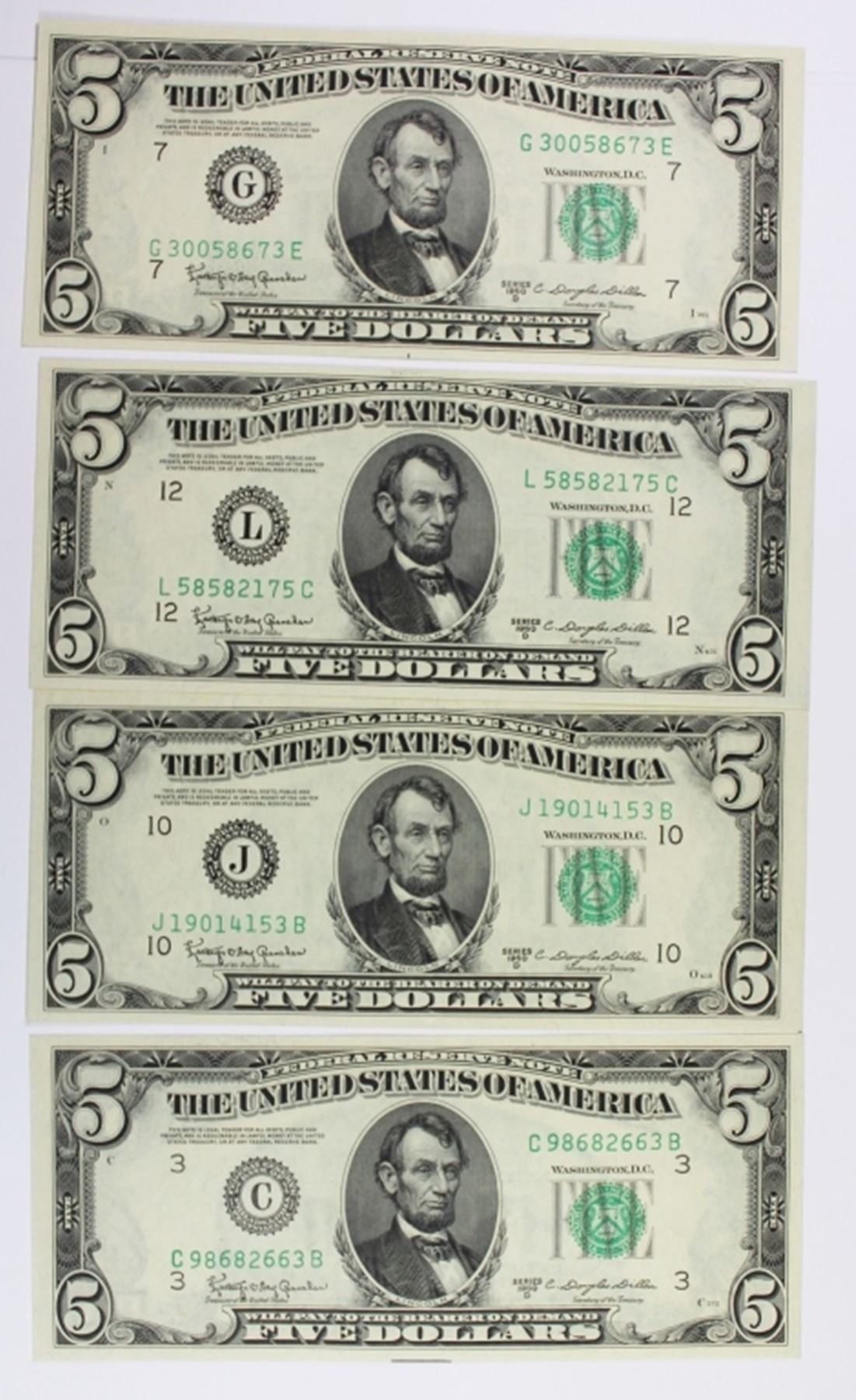 (4) 1950-D $5.00 FEDERAL RESERVE NOTES