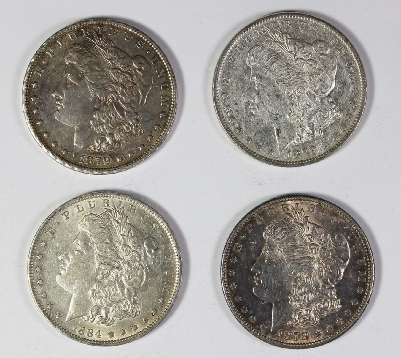 1879-O, 1879, 1884-O AND 1878-S. ALL AU. ESTIMATE: $100-$150