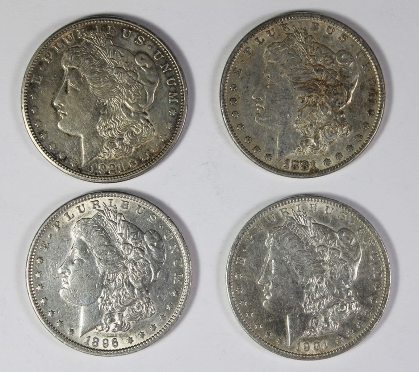 1896, 1921-S, 1881 AND 1901-O. ALL AU. ESTIMATE: $85-$125