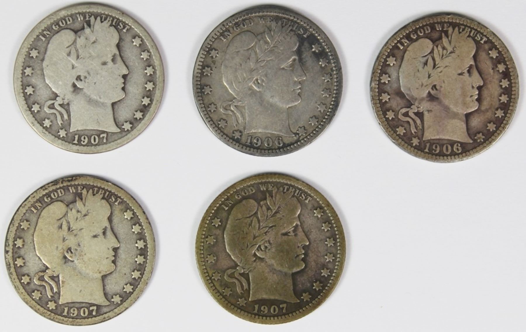 1906 VF+, 1906-D F, 1907 VG, 1907-D PCGS F-VF 15 AND 1907-O GOOD+. ESTIMATE: $100-$150
